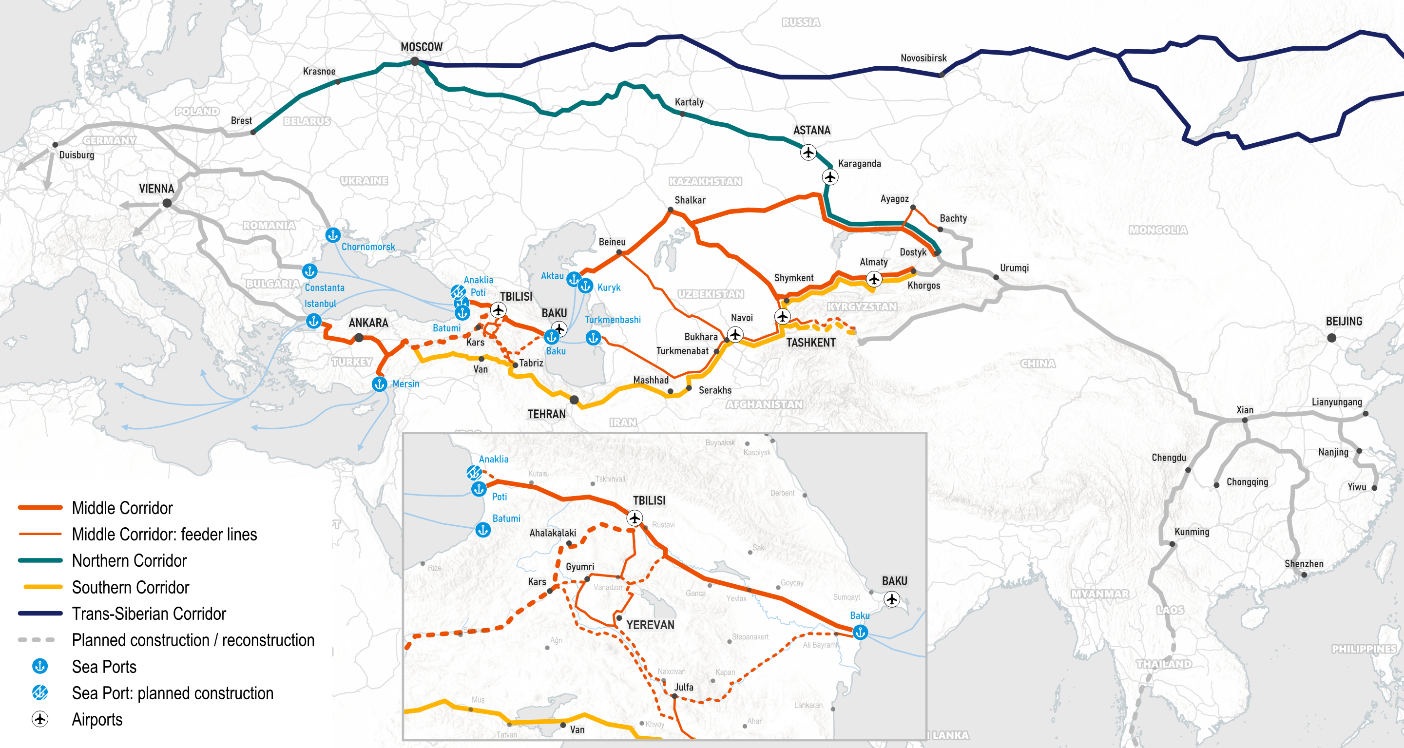 Evidence-based re-assessment of trans-Eurasian logistics and connectivity under post-2022 geopolitical and market conditions. The assignment aimed to reassess freight demand, corridor performance, and strategic investment priorities in response to shifting trade routes and supply chain dynamics.